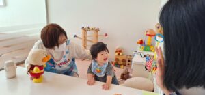 今では保育士の先生と楽しく遊んで過ごしていますね。